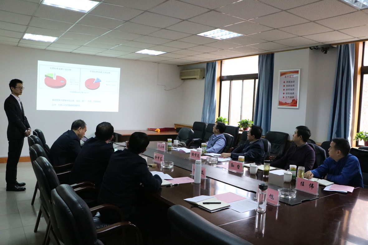 首先,潘智炎副總經理介紹陜西糧農集團是陜西省委省政府按照“大集團引領”戰略組建而成,直屬企業包括有陜西省農墾集團、儲備糧管理公司、西瑞集團、油脂集團、軍糧供應站、糧食物流集團6家省屬國有糧農企業,具有完備的全產業鏈。在關中地區擁有農場5處、耕地18萬畝,種植技術完善,生產條件優越。隨后聽取了中心農業地質調查成果介紹,他認為成果意義重大,關中地區富硒土壤的發現為我省富硒農業規模化、綠色化、高效化提供了基礎條件,持續開展的種植實驗為富硒產業發展提供了良好的科學依據。他提出糧農集團在農業種植、田間管理、糧油加工、市場營銷方面優勢明顯,省地調院在土地質量地球化學調查研究、富硒農作物種植方面成果突出,因此,雙方具有良好的合作基礎和條件。