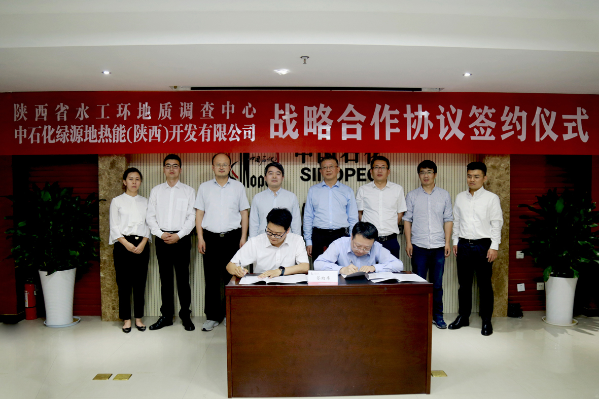 陜西省水工環(huán)地質(zhì)調(diào)查中心與中石化綠源地?zé)崮埽兾鳎╅_發(fā)有限公司簽訂戰(zhàn)略合作協(xié)議