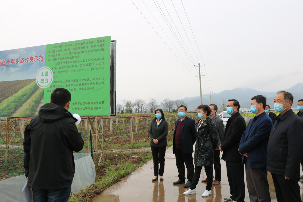 2020年4月3日,寶雞市人大常委會副主任曹海芹一行來眉縣土壤治理修復技術應用試點項目調研,眉縣副縣長曲永宏、縣人大常委會副主任郭杜鵑、寶雞市生態環境局眉縣分局局長李玉懷、副局長呂軍、陜西省水工環地質調查中心副主任林平選等陪同調研。
