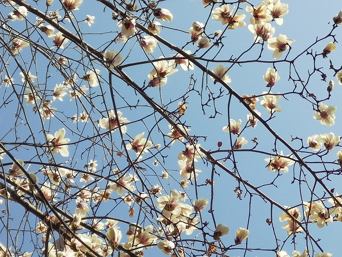 沒有一點含蓄,所有的花朵都浸在春光中,表情直率大膽,愛就寫在臉上,幸福也在臉上,活潑自由明朗。面對春光,玉蘭花選擇了最好的姿態。